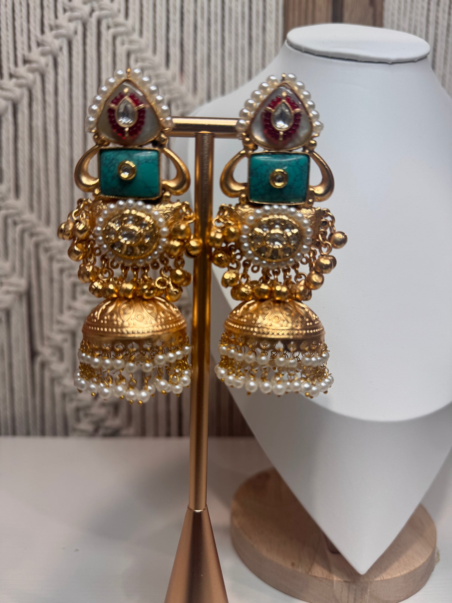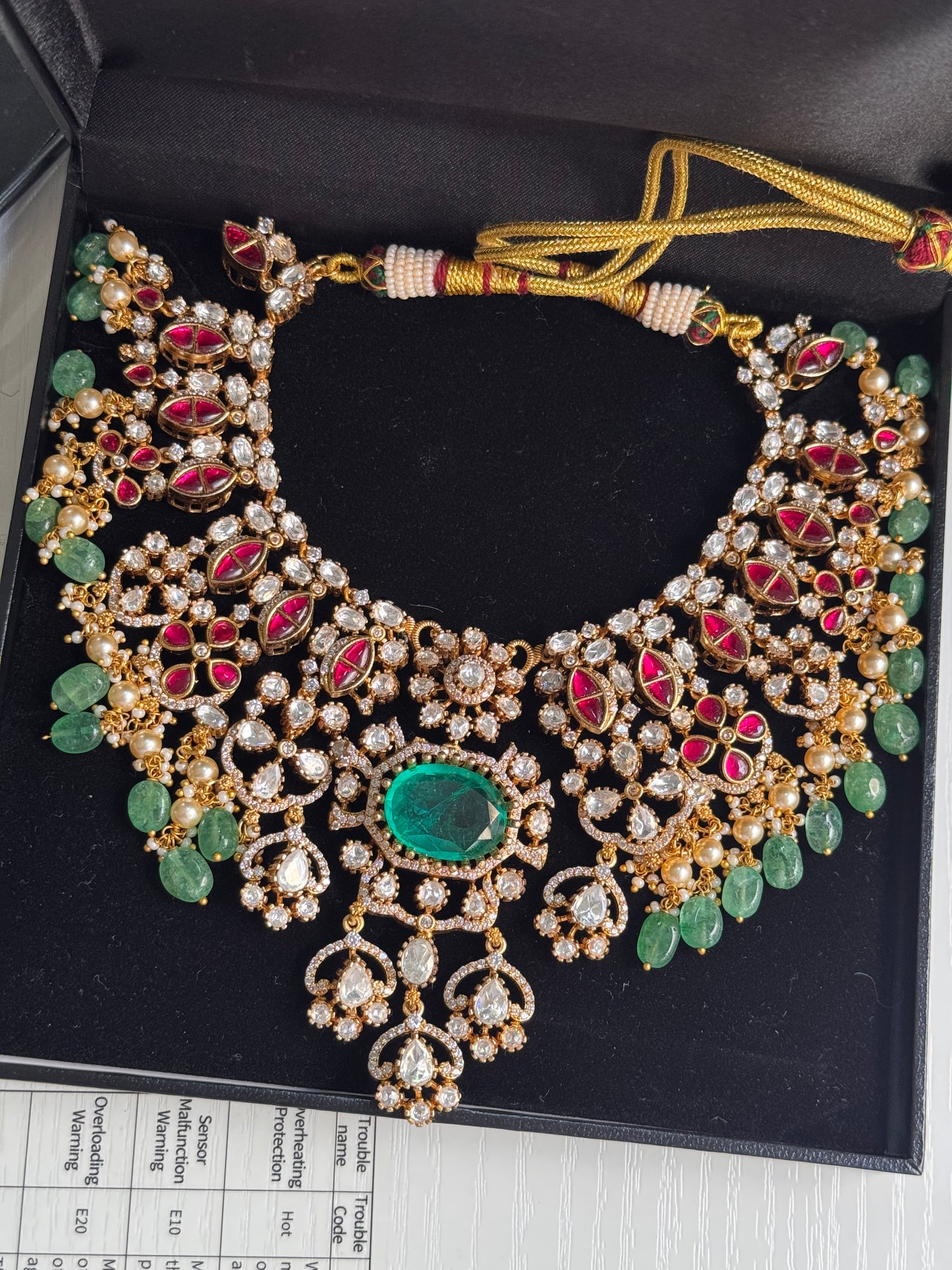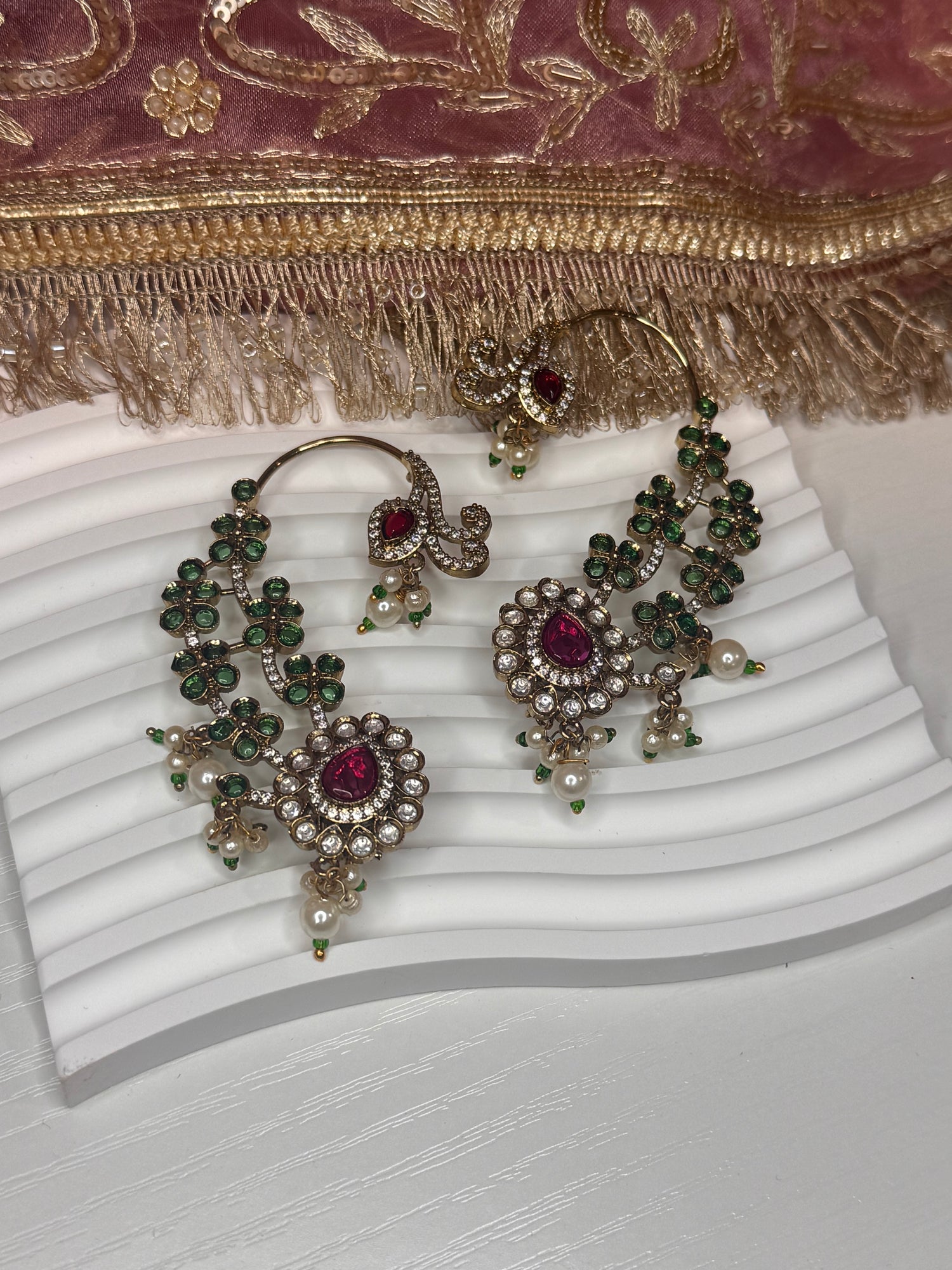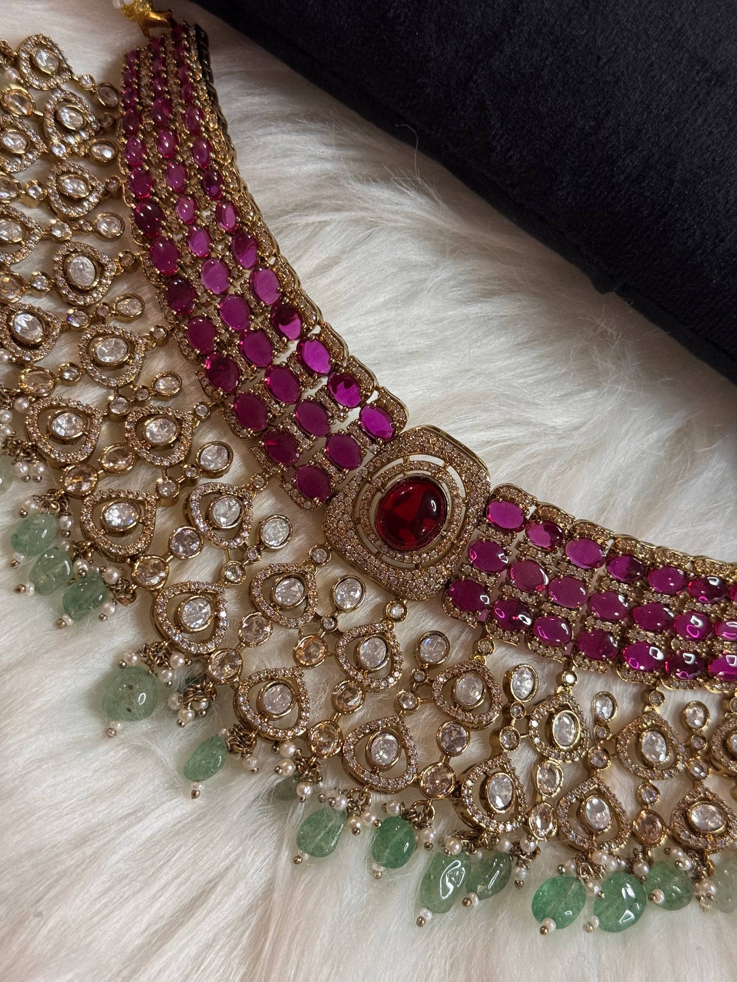 The 22 carat gold plated collection highlights top-notch jewelry with real mosaanite and kundan stones for an authentic look