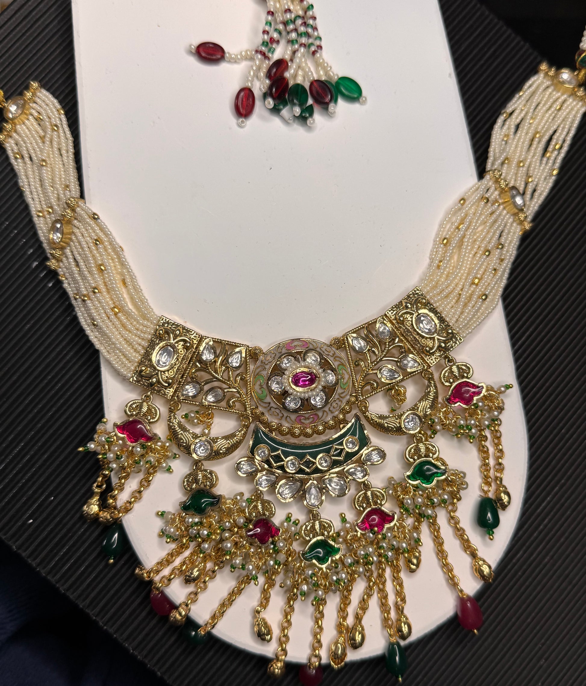 Embellished with uncut kundan and fine meenakari, wear ask chokar or beautiful U neckline! Comes with danglers