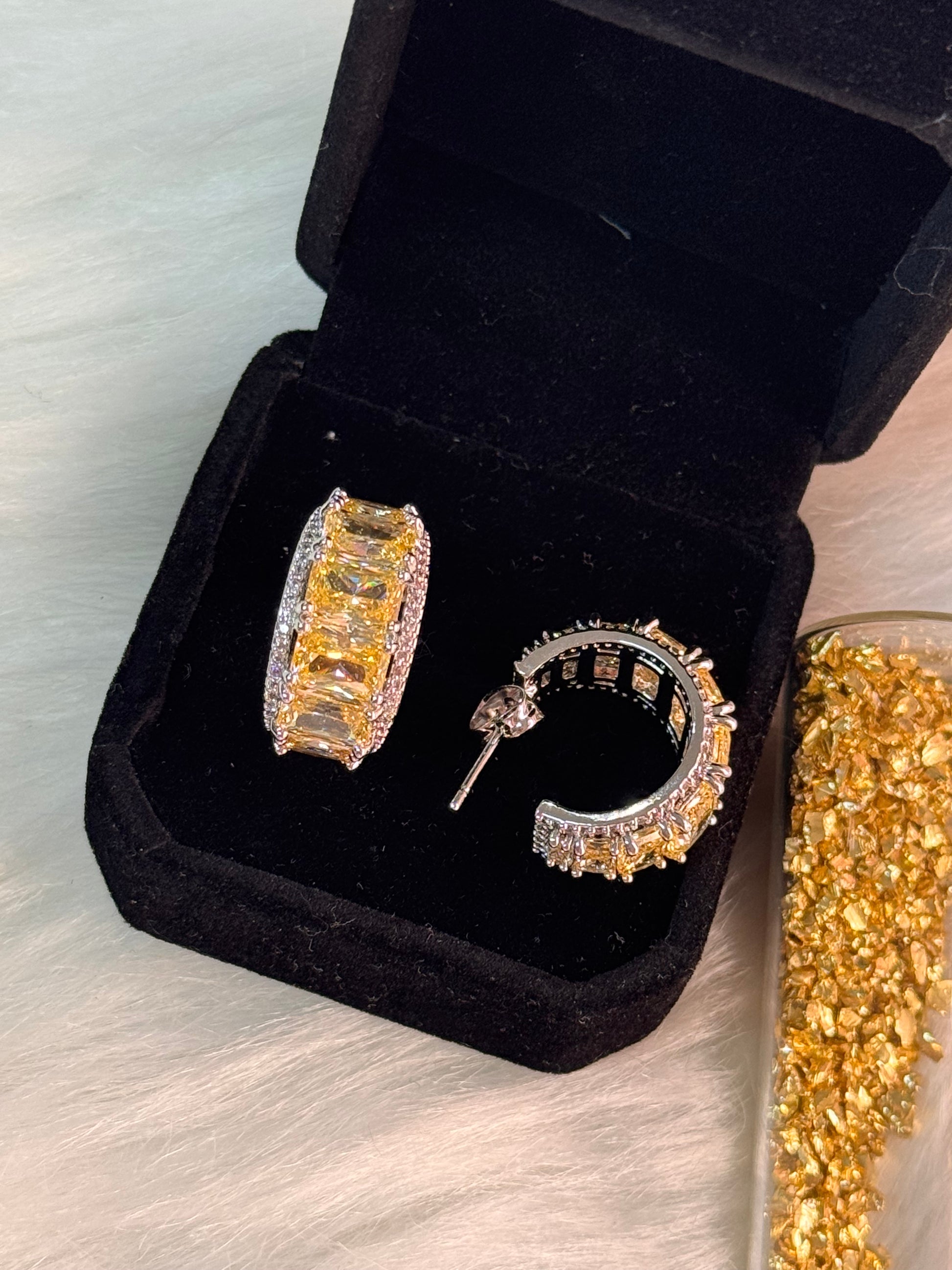 hoopsElevate your elegance with these finely crafted hoop earrings, featuring CZ stones iThe white gold polish adds a luminous sheen, perfectly complementing the delicate detailing. Ideal for adding a touch of refined sophistication to any ensemble.