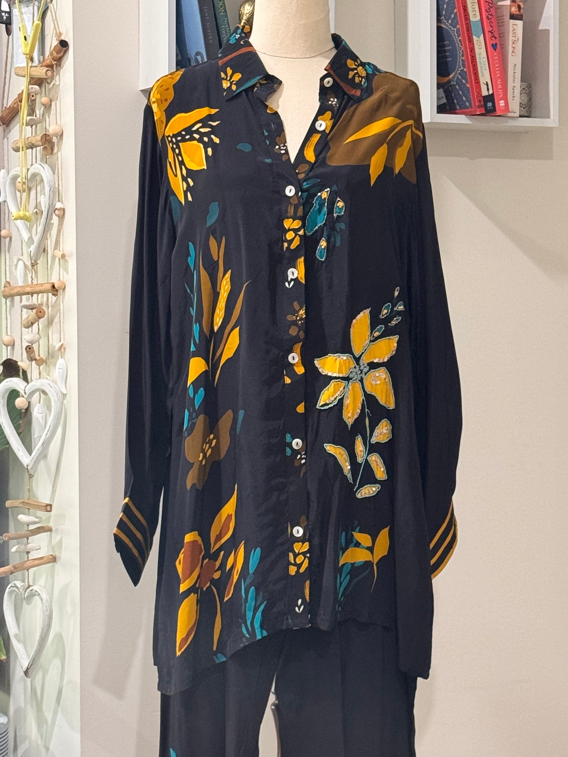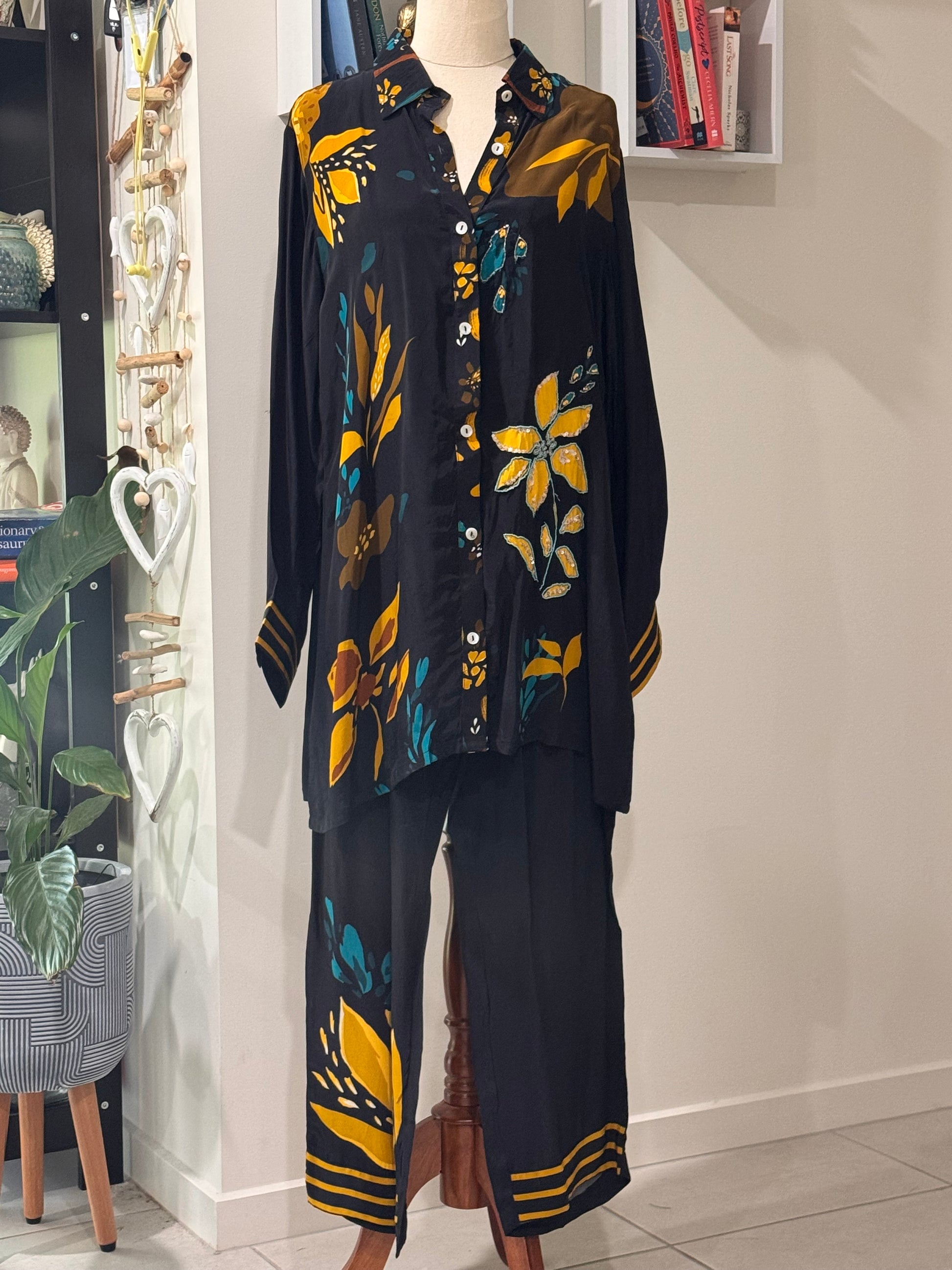 Digital print cordset comes with straight pants and spaghetti blouse for a different look