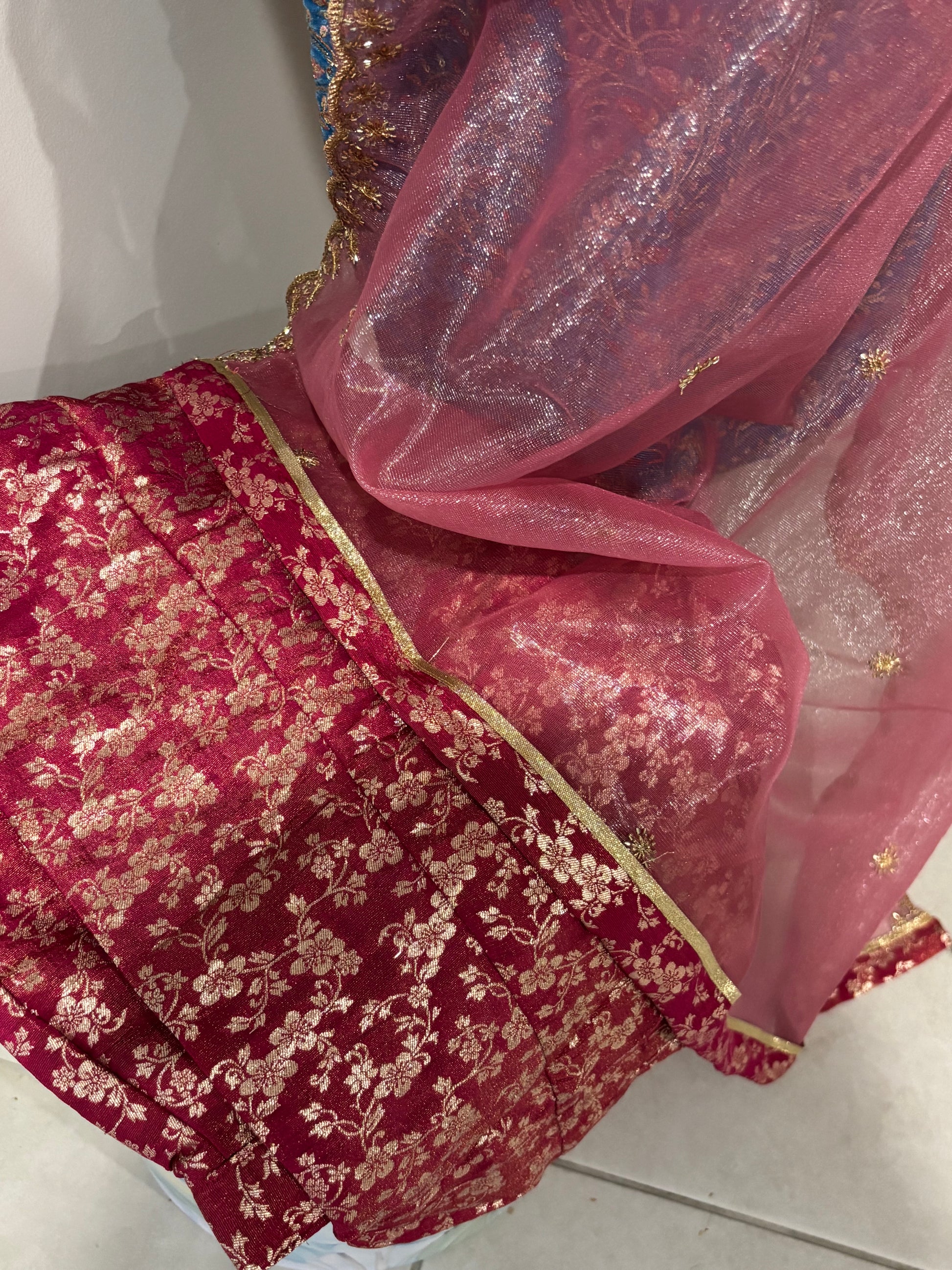 💫 Shimmer Dupatta with handwork and lace/patti detailing