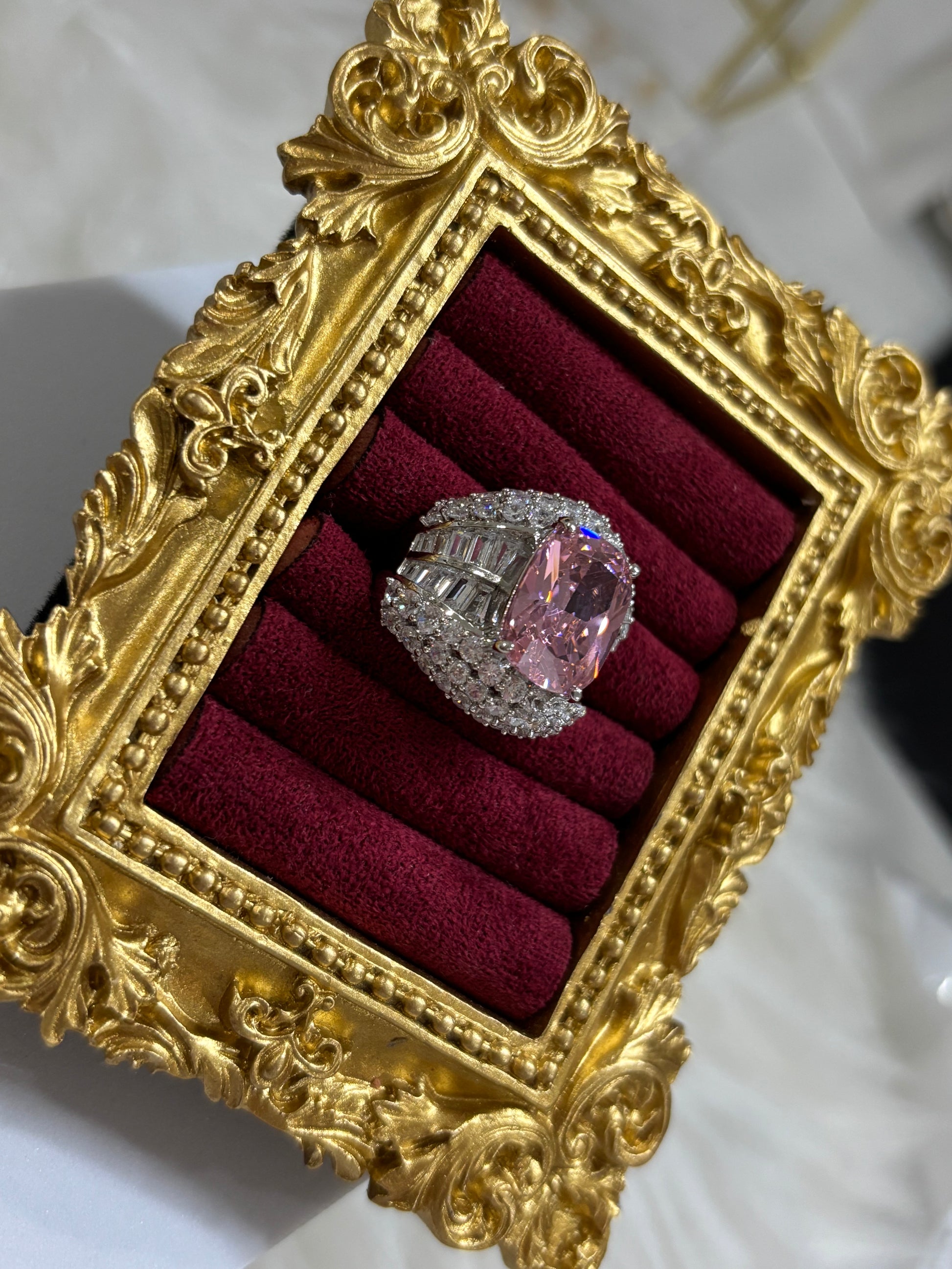 Cocktail style diamond look a like ring! Adjustable so fit any size