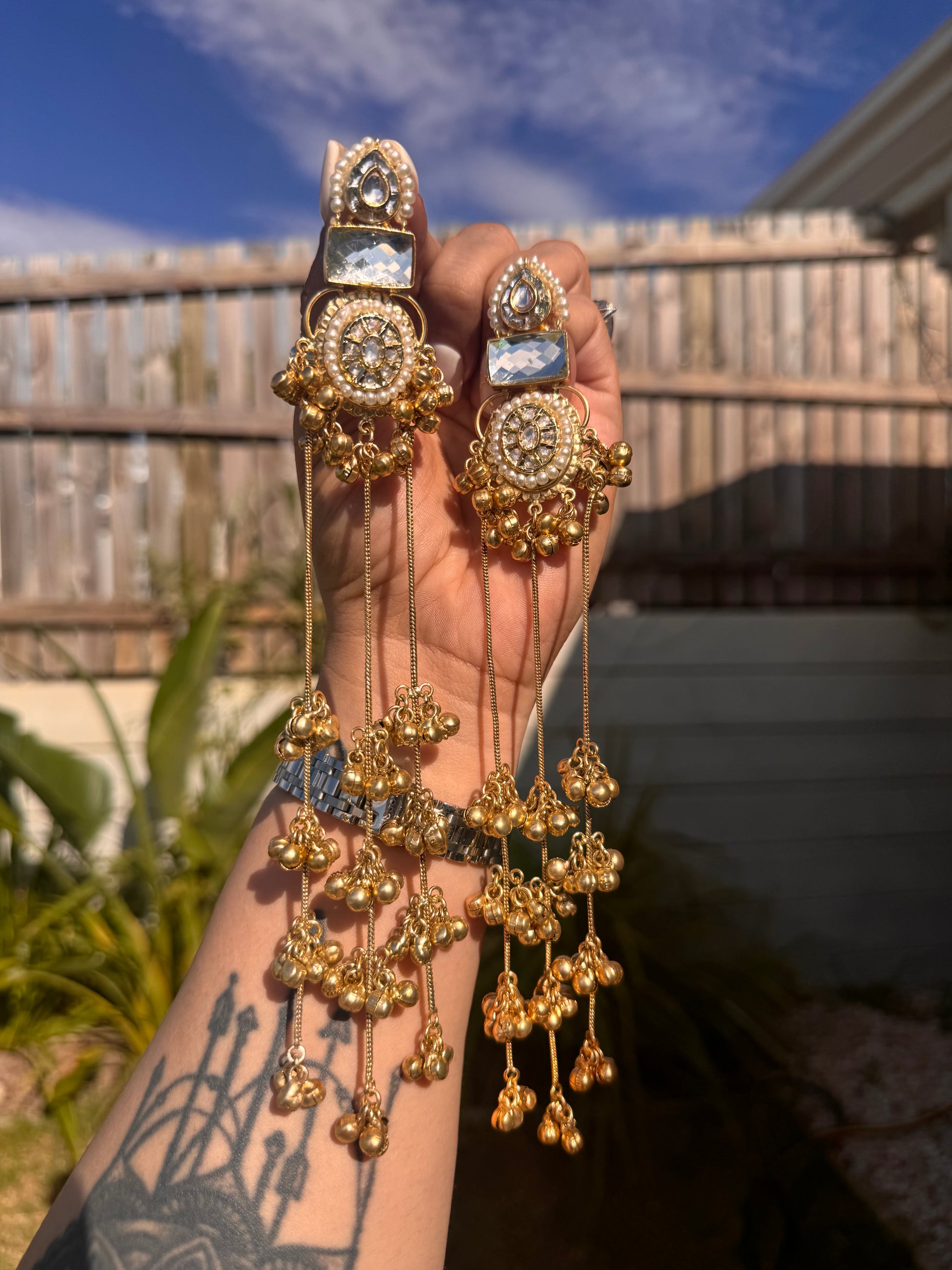 Discover the refined elegance of these lightweight brass earrings, crafted in the distinguished Kashmiri tradition. Each pair showcases meticulously placed pachi kundan stones and delicate doublet work, creating a harmonious blend of heritage artistry and contemporary sophistication. The thoughtfully engineered brass construction provides effortless comfort for extended wear, while the intricate embellishments deliver a statement of timeless grace. An ideal choice for discerning jewellery enthusiasts seeking authentic, culturally-rooted pieces with understated opulence.