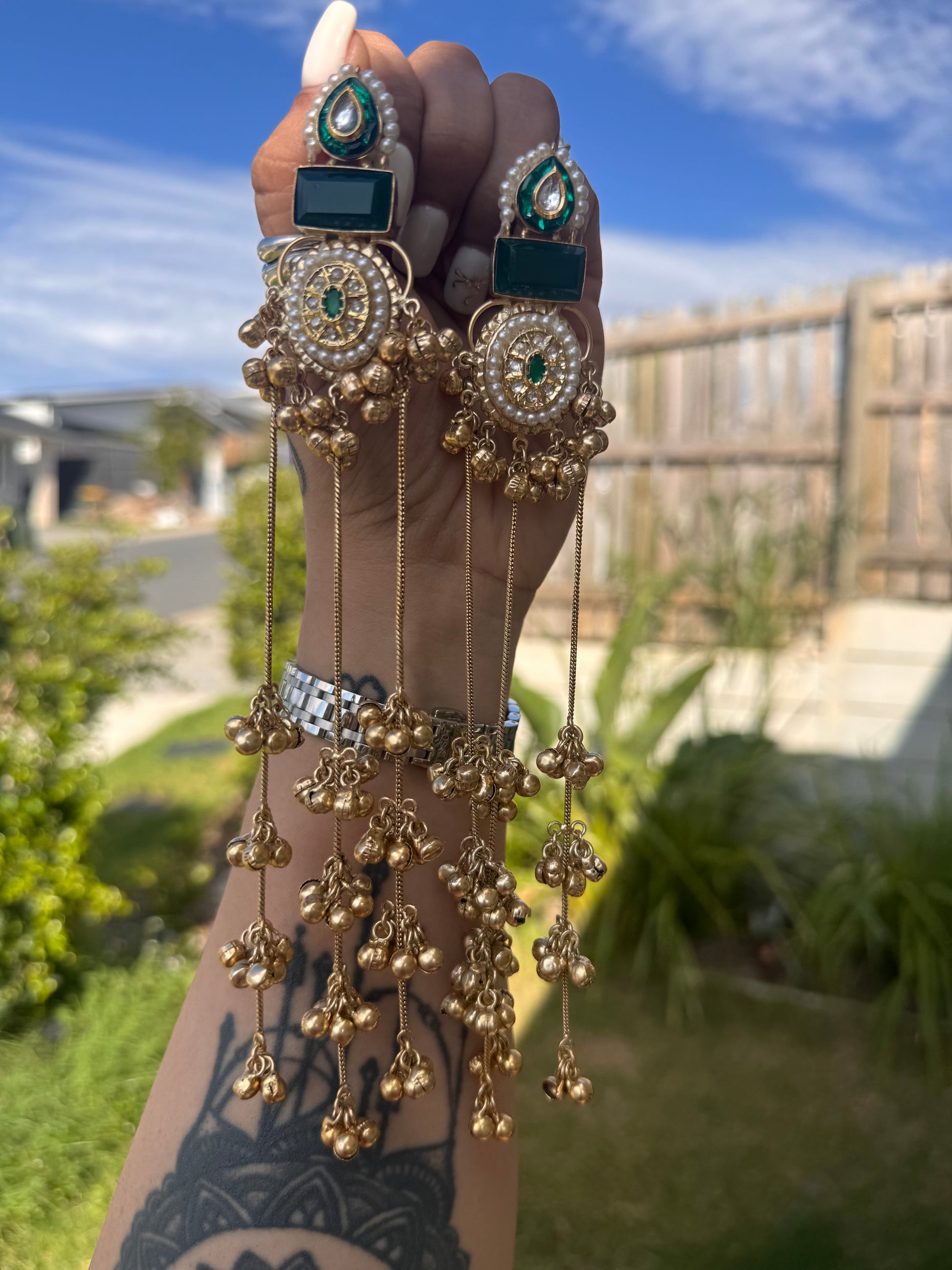 Discover the refined elegance of these lightweight brass earrings, crafted in the distinguished Kashmiri tradition. Each pair showcases meticulously placed pachi kundan stones and delicate doublet work, creating a harmonious blend of heritage artistry and contemporary sophistication. The thoughtfully engineered brass construction provides effortless comfort for extended wear, while the intricate embellishments deliver a statement of timeless grace. An ideal choice for discerning jewellery enthusiasts seeking authentic, culturally-rooted pieces with understated opulence.