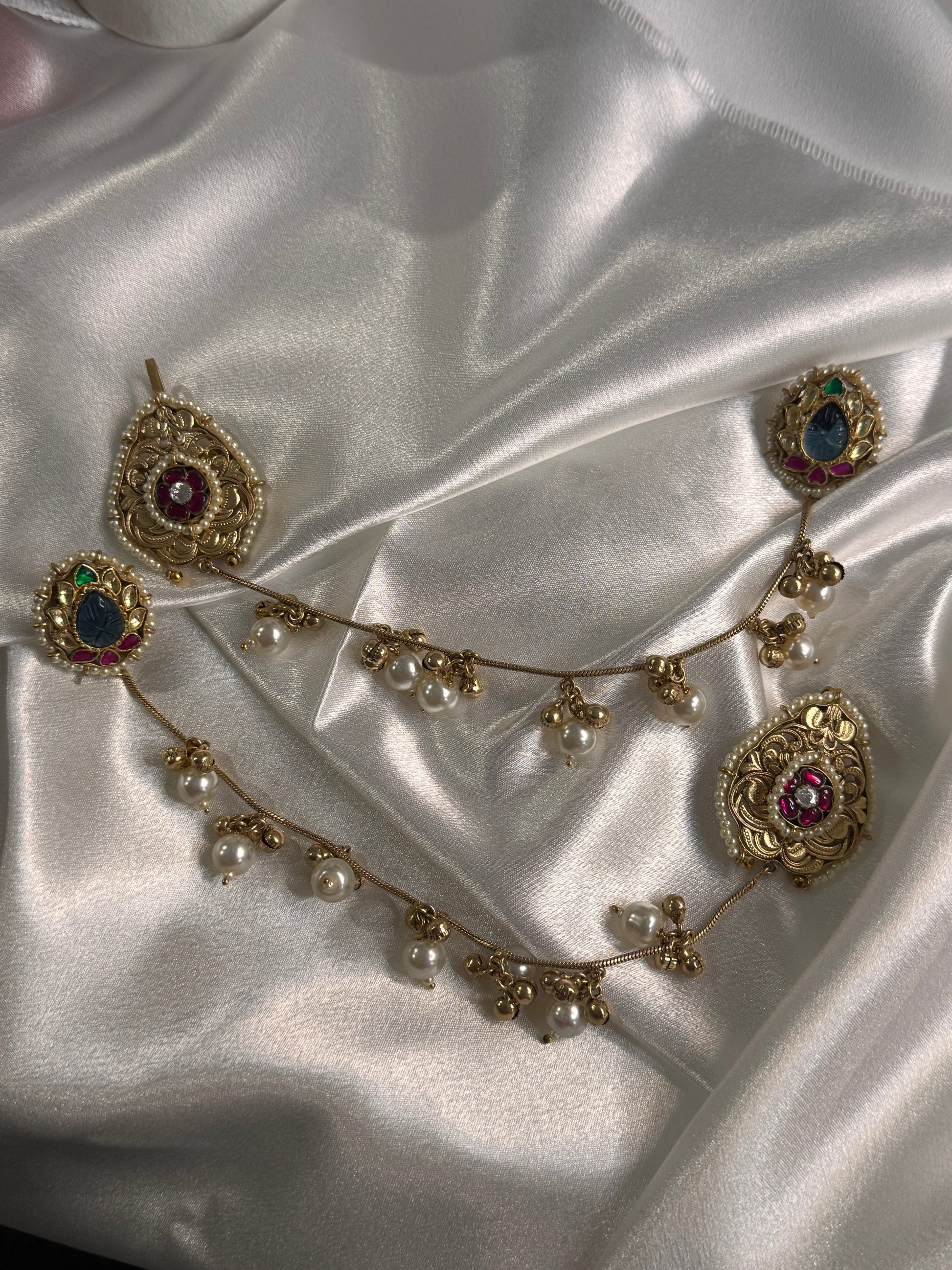 Indulge in the exquisite elegance of our FMC2535 Brass (Kashmiri) Earrings. Handcrafted with authentic brass metal and adorned with Pachi kundan stones, stud design with sahara style accents. Elevate your look and make a statement with these luxurious Kashmiri earrings.