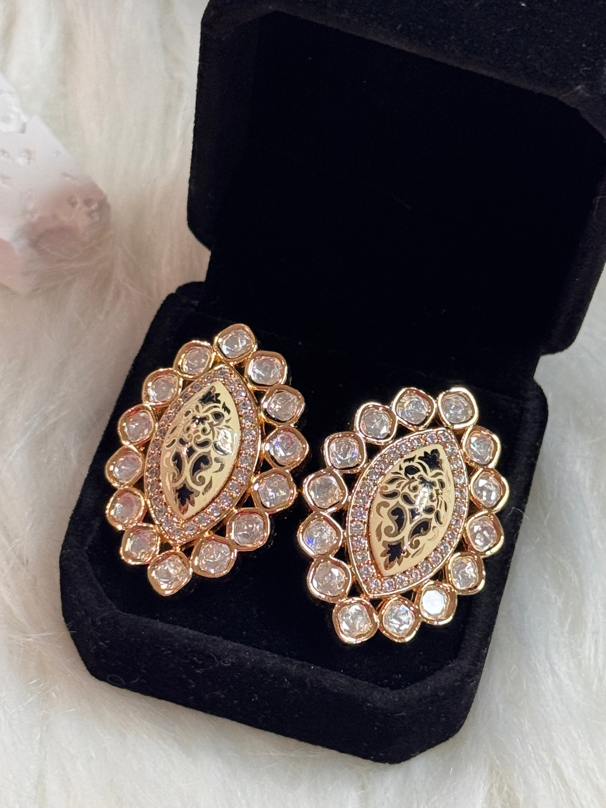 Uncut Kundan Stud Earrings - traditional artistry with premium quality materials. Featuring authentic uncut kundan stones set with fine meenakari enamel work, these earrings blend elegance and craftsmanship. Their intricate enamel detailing enhances durability while adding vibrant color, making them an exquisite choice for refined style and lasting beauty.