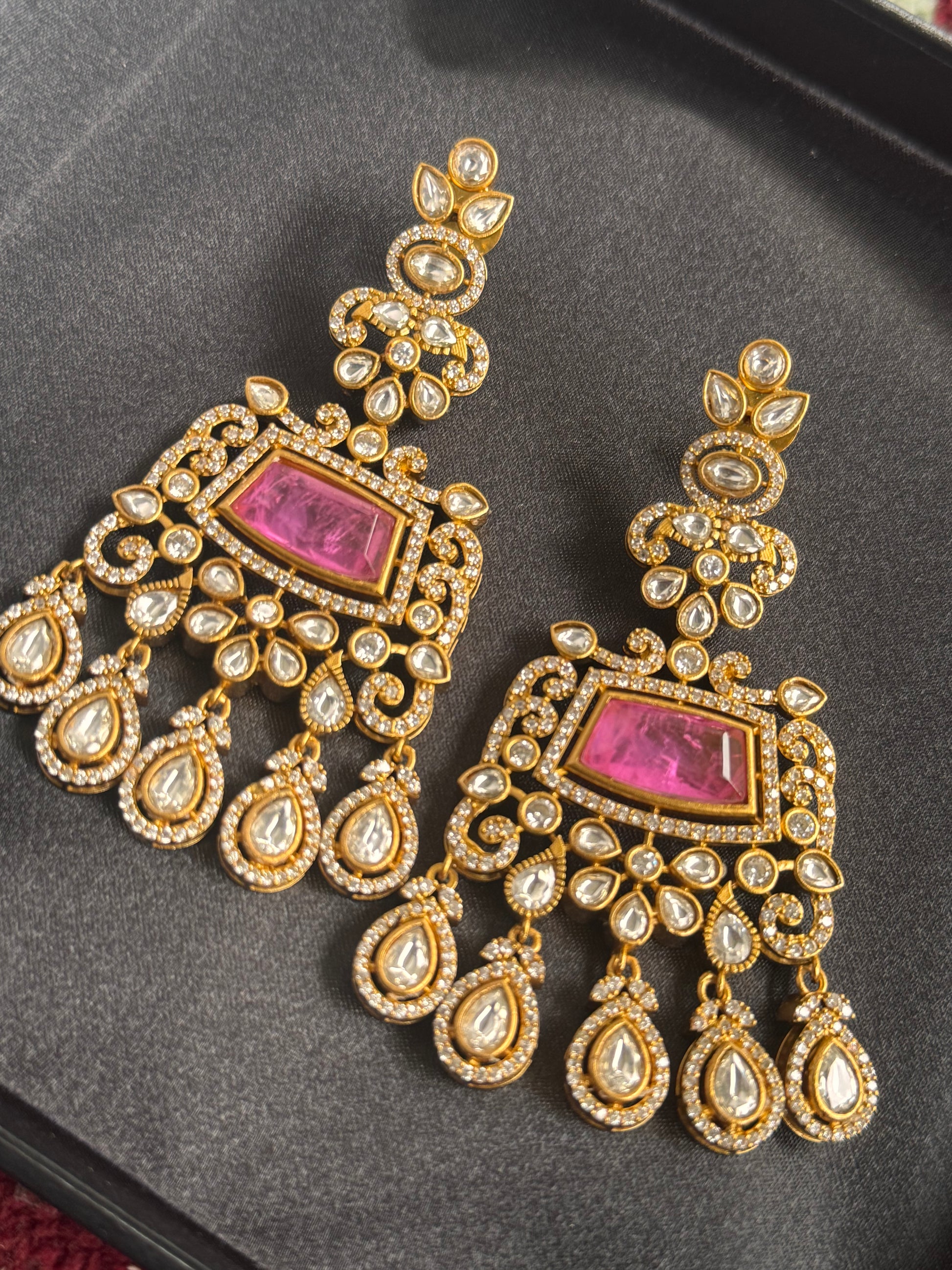 Gracefully designed mossanite Kundan earrings with natural potta stone