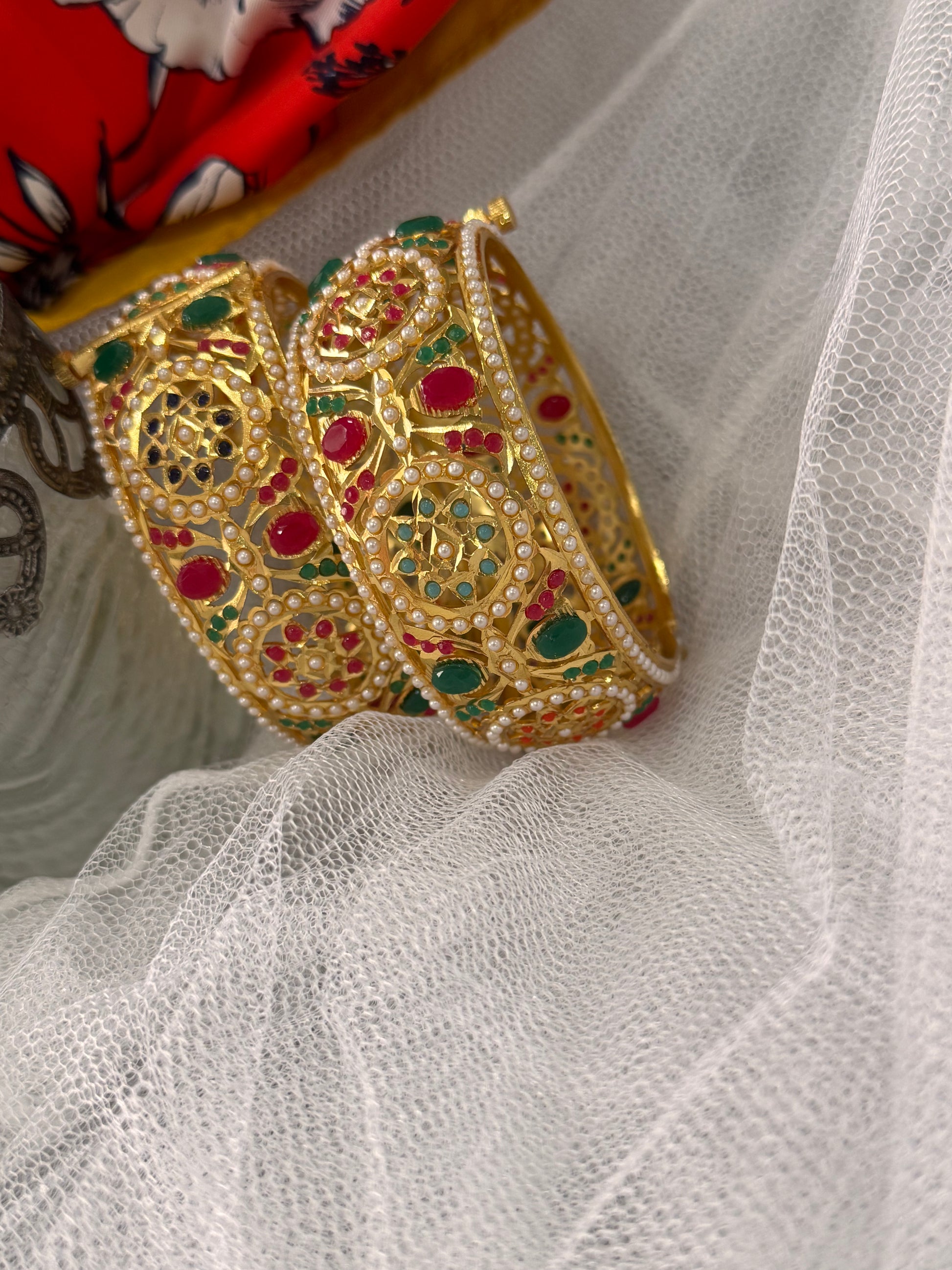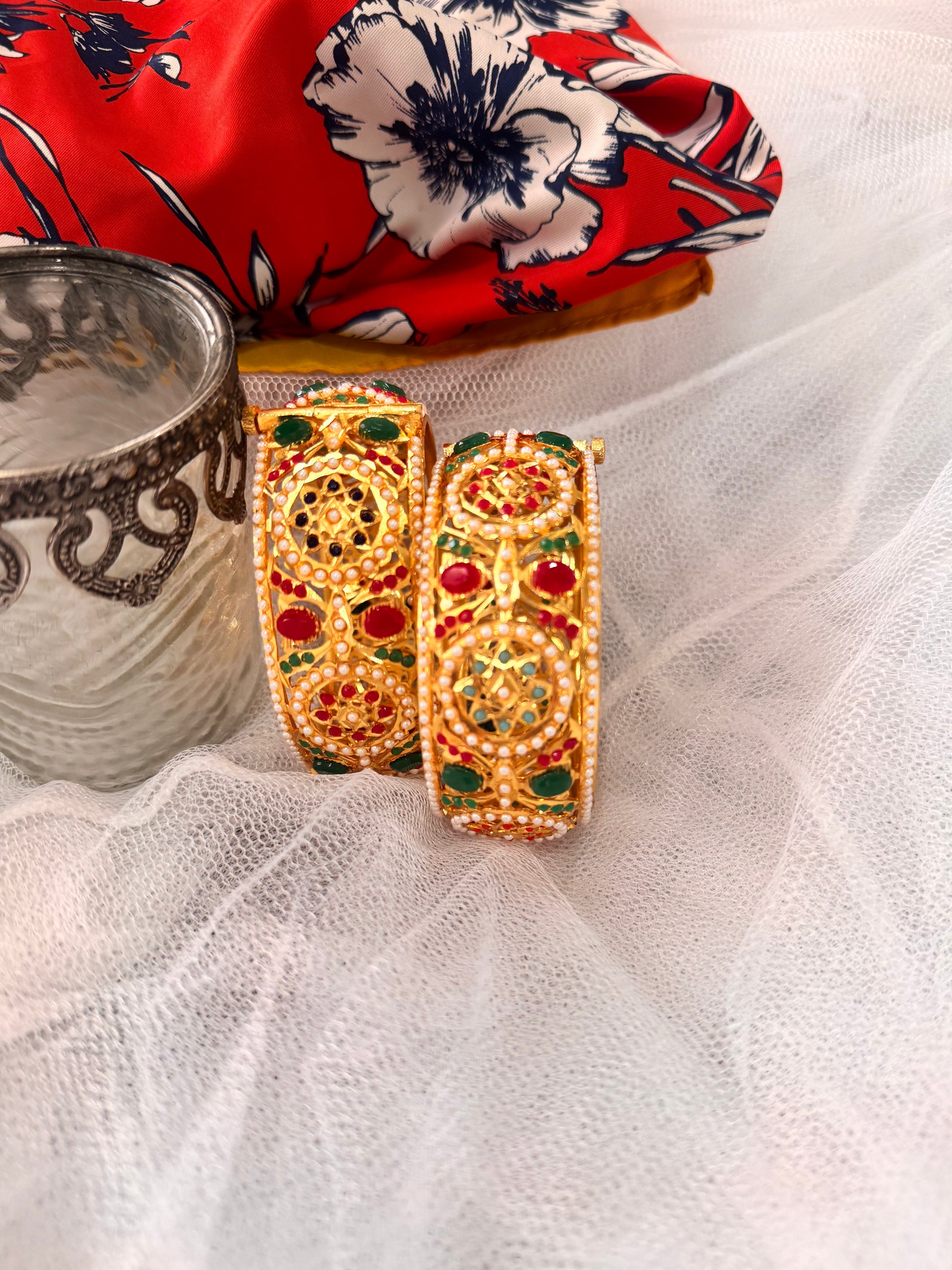 A pair of gorgeous jadau kangan with one gram plating and a ruby panna!
