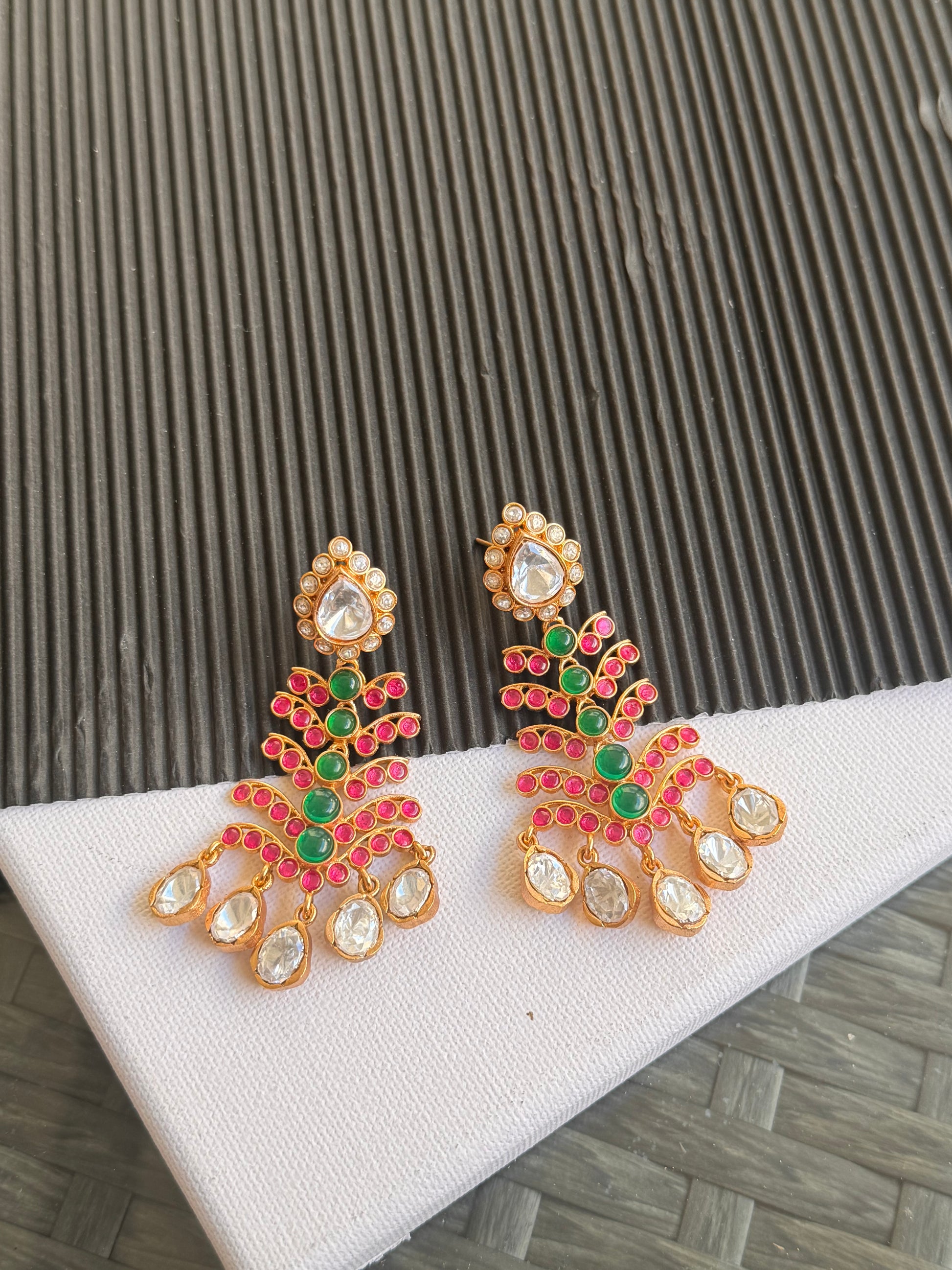 Beautiful a palm shaped gold plated earrings with mossanite stone