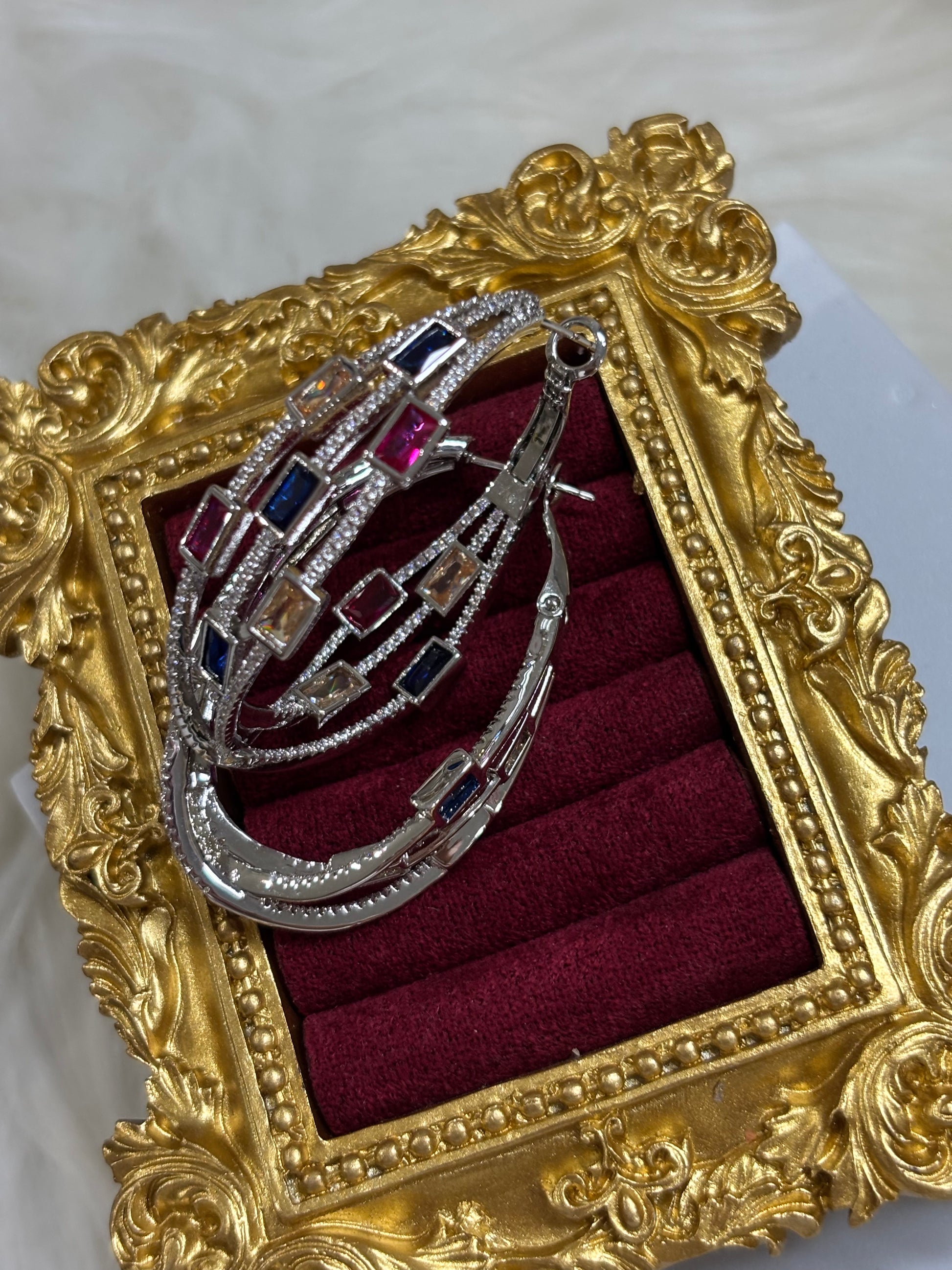 Enhance your style with the FMC1651 - WGP Hoops Earring. Made with white gold plating, these hoops are both elegant and durable. Featuring a lab gemstone, these earrings add a touch of sophistication to any outfit. Elevate your look with these stunning hoops.