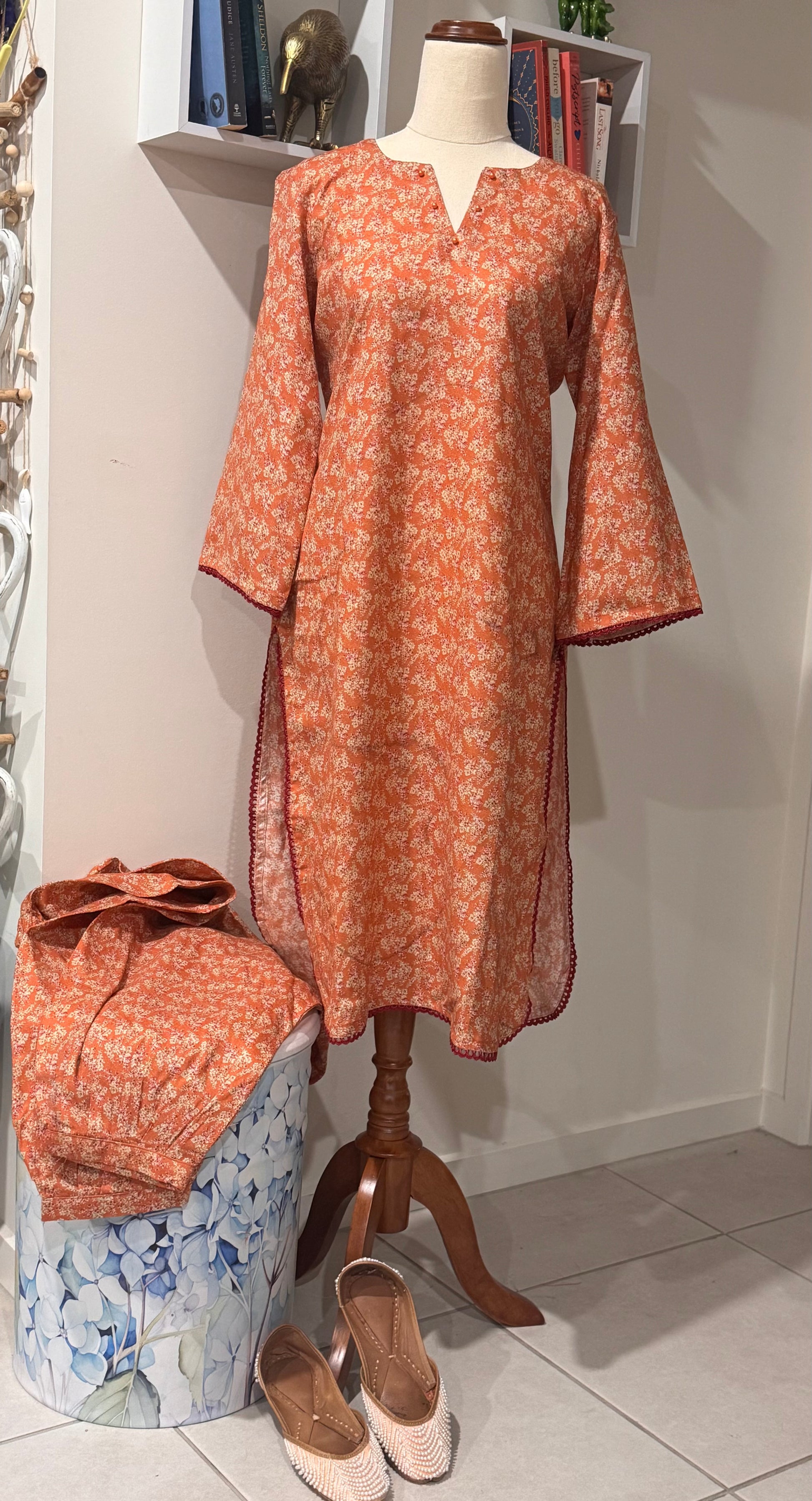 Please note that slight colour variations may occur due to lighting and screen settings. As each piece is boutique made, minor size variation (+/- 1 inch) are natural and part of the garment's unique craftsmanship. Feel free to ask for exact measurements.